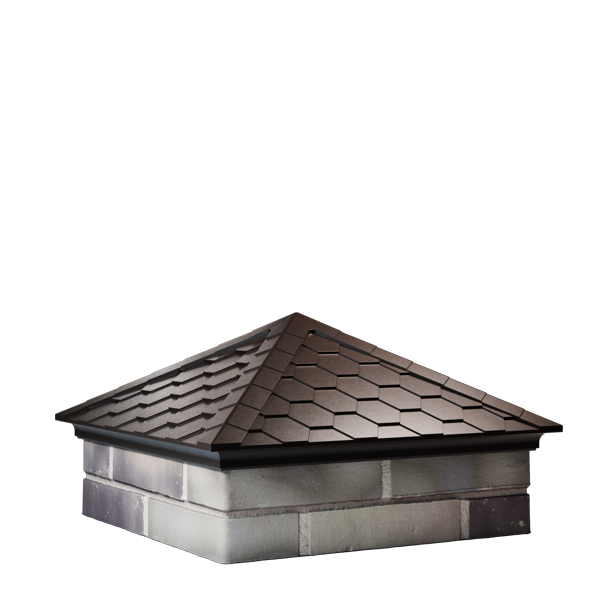 Простая и лаконичная форма, декоративное оформление в виде имитации черепицы, наличие капельника и возможность оснащения фонарем и пикой - все это колпак EVEREST. Состав изделия - полимеркомпозит. Это простой и экологически чистый материал, в состав которого входит сухой песок и полимеры.