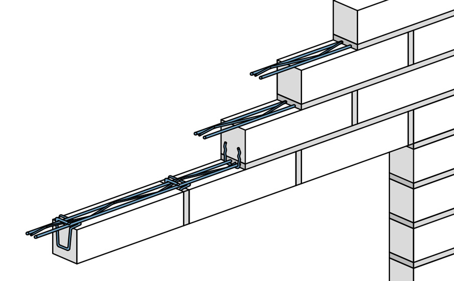 Горизонтальная перемычка для кирпича толщиной 45 - 65 мм